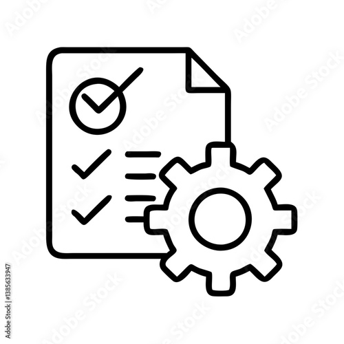 © IsratJahan, Obraz premium Project management checklist with gear icon for process optimization and task completion system design