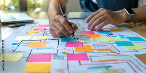 Fototapeta premium Project Work with Cell Phone on Desk Enhanced, project work, cell phone, desk...