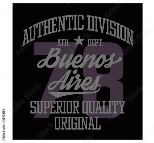 Fototapeta premium Projekt koszulki sportowej Buenos Aires, typografia w stylu drużyny sportowej na plakat, koszulkę lub nadruk.