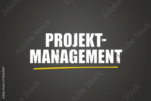 Obraz premium Projektmanagement. Eine schwarze Tafel mit weissem Text. Illustration mit Grunge Textstil.