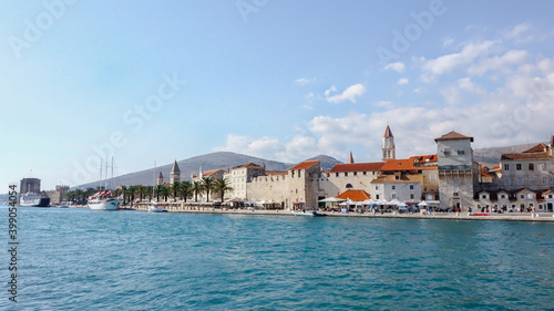 © Baiad13, Fototapeta premium Promenade of Trogir town with stone walls and bell tower