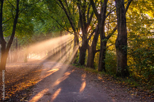 © Piotr Gołębniak, Naklejka premium Promienie słońca o pranku w parku