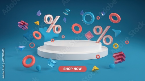© Media Srock, Fototapeta premium Promotional display featuring percentages and geometric shapes for shopping