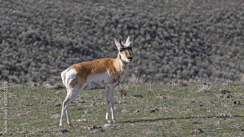 © kgrif, Fototapeta premium Pronghorn grazing at Yellowstone grassland