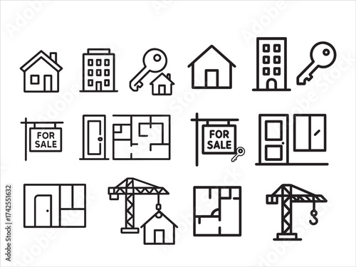 Fototapeta premium Property and Housing Outline Vectors