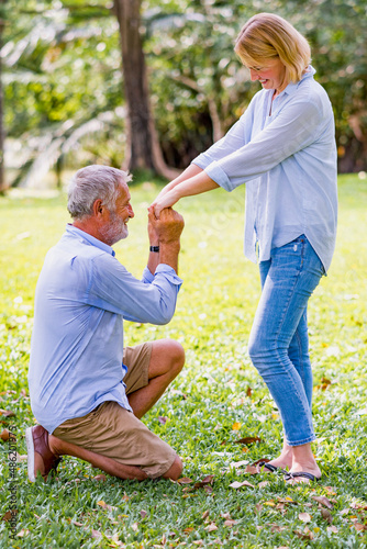 Fototapeta premium Propose happiness couple elderly caucasian relax weekend lifestyle in park,...