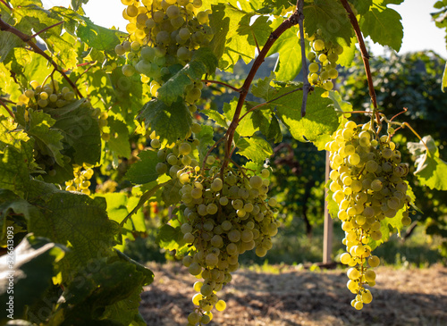 © wjarek, Fototapeta premium Prosecco white grapes on a vineyard befor harvesting in Valdobbiadene hills. Veneto. Italy