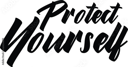 Obraz premium Protect Yourself Vector design idiom Text Phrase on white background