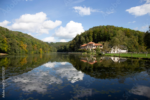 Fototapeta premium Protected landscape area with sandstone Rocks and green Nature in the Central...