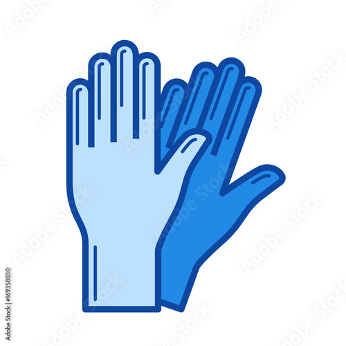 © Visual Generation, Obraz premium Protective gloves vector line icon isolated on white background. Protective gloves line icon for infographic, website or app. Blue icon designed on a grid system.