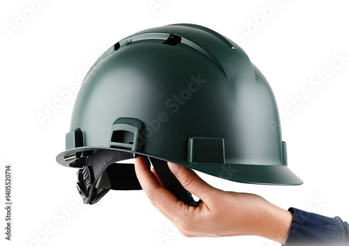© Wawan, Fototapeta premium Protective headwear displayed on a hand, showcasing a safety design against a transparent background