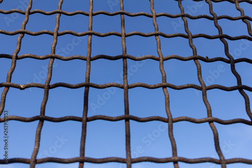 © aleksashka_, Fototapeta premium Protective mesh on a blue background