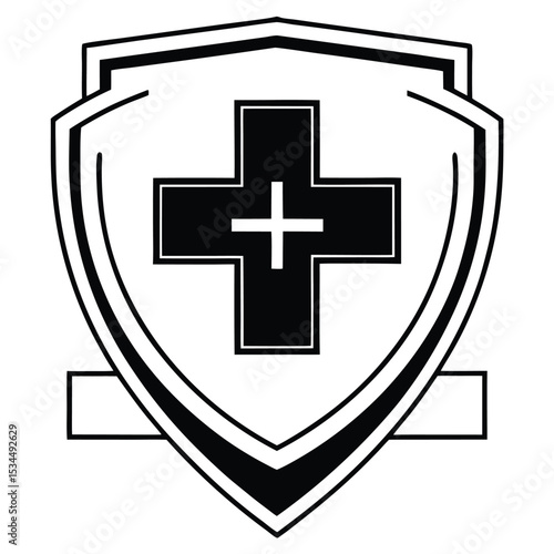 Obraz premium Protective Shield Medical Cross Emblem Healthcare Security Logo