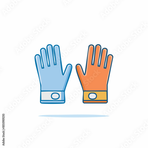 © Oleg, Obraz premium Protective work gloves, blue and orange, rubber coating for safety on construction site or in garden