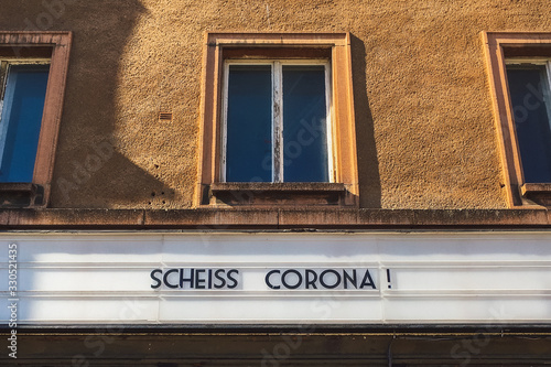 © Jonathan Schöps, Fototapeta premium protest about corona virus in letters on advertising panel in german language