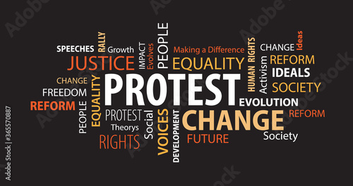 © JJAVA, Obraz premium Protest Word Cloud on a Black Background