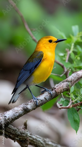 © simba kim, Fototapeta premium prothonotary warbler, perches, in the wild