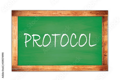 © outchill, Fototapeta premium PROTOCOL text written on green school board.