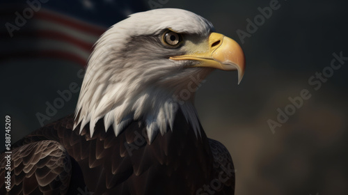 © Bartek, Obraz premium Proud Bald Eagle with American Flag Background. Generative AI