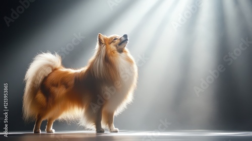 © Hafaiz, Fototapeta premium Proud Dog on Competition Stage with Studio Lighting