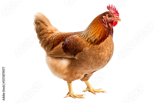 © Darunee, Fototapeta premium Proud Free-Range Brown Hen in Vibrant Farmyard Close-Up on Transparent Background