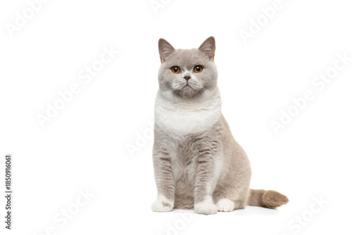 Obraz premium Proud grey and white british shorthair cat sitting isolated on a white...