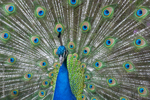 © erwin, Fototapeta premium Proud peacock with open tail feathers