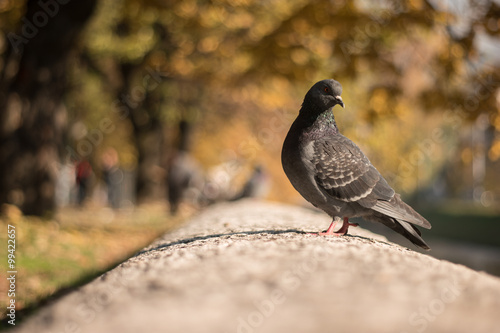 © Myvisuals, Obraz premium Proud Pigeon on the Wall illuminated by a tepid winter sun