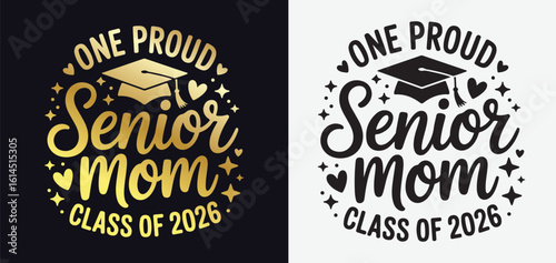 © Suriya, Naklejka premium Proud Senior Mom Class of 2026 Typography SVG with Graduation Cap and Heart Accents