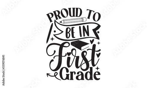 Naklejka premium Proud To Be In First Grade-School Svg Design, Hand drawn lettering phrase isolated on white background, Illustration for prints on t-shirts, bags and posters, for Cutting Machine, Silhouette Cameo .
