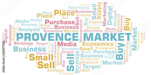 © sharafmaksumov, Obraz premium Provence Market word cloud. Vector made with text only.