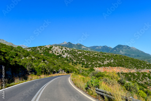 © Ilhan Balta, Naklejka premium Provinzstraße vor Kardamyli, Peleppones- Griechenland