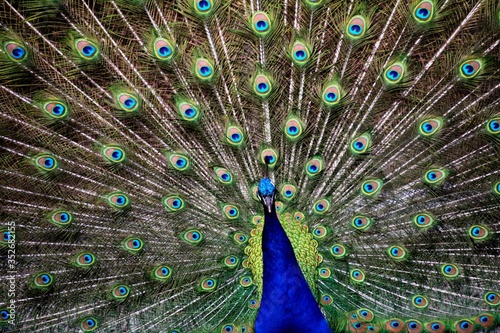 © JoaoPriolePhotos, Obraz premium Próżny i pewny siebie kolorowy paw