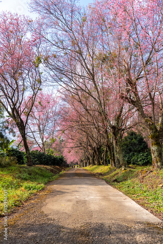 © mnonchan, Obraz premium Prunus cerasoides flowers or wild himalayan cherry pink flower