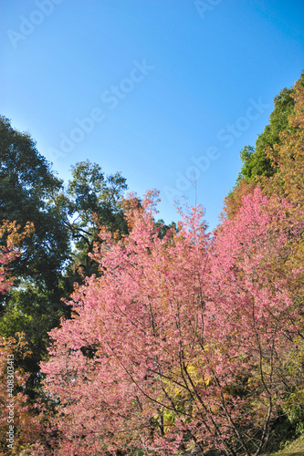 © chin797, Fototapeta premium Prunus cerasoides in selective focus point