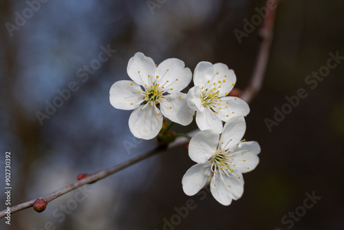 Fototapeta premium Prunus cerasus flowering tree flower, beautiful white petals tart dwarf...