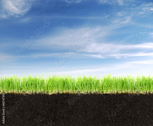 © viperagp, Fototapeta premium Przekrój terenu z glebą, trawą i błękitnym niebem.