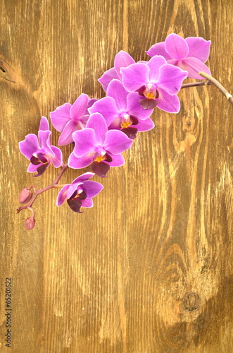 Naklejka premium przepiękne orchidee na drewnianym tle