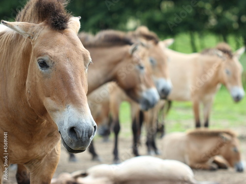 Fototapeta premium Przewalskihengst mit seiner Herde