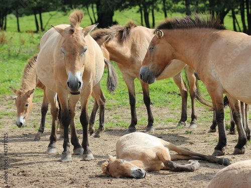Obraz premium Przewalskipferde mit Fohlen