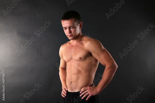 Fototapeta premium Przystojny mięśni młody człowiek na ciemnym tle