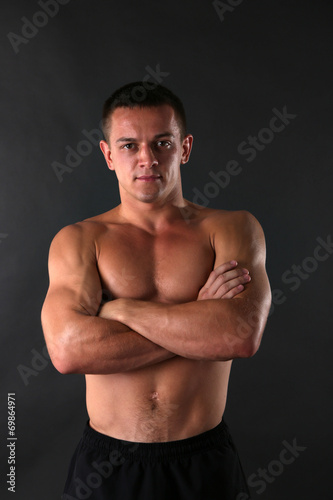 Fototapeta premium Przystojny mięśni młody człowiek na ciemnym tle