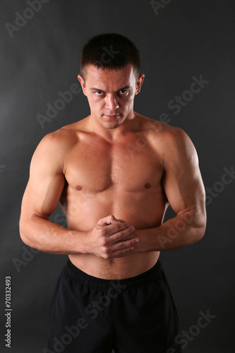 Fototapeta premium Przystojny mięśni młody człowiek na ciemnym tle