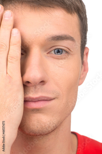 © BlueSkyImages, Obraz premium przystojny, młody chłopak na białym tle.
