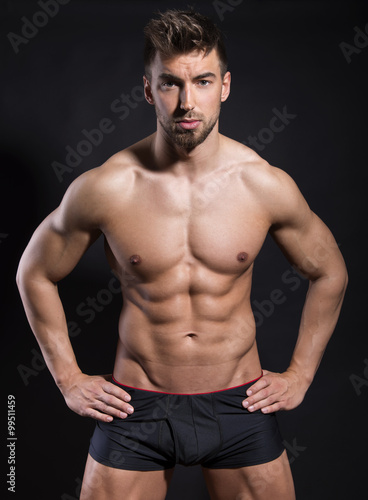 © Anetta, Fototapeta premium przystojny młody kulturysta z stonowaną sylwetką pozowanie bez koszuli