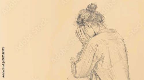 Fototapeta premium Psalms 6: Prayer for Mercy, Distress, Deep Sorrow, Seeking Deliverance and Healing - Biblical Illustration with Beige Background and Copyspace for Religious Content