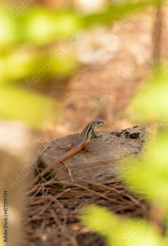 © JackUli, Obraz premium Psammodromus algirus or the Large Psammodromus lizard during hunting. Algarve, Portugal.