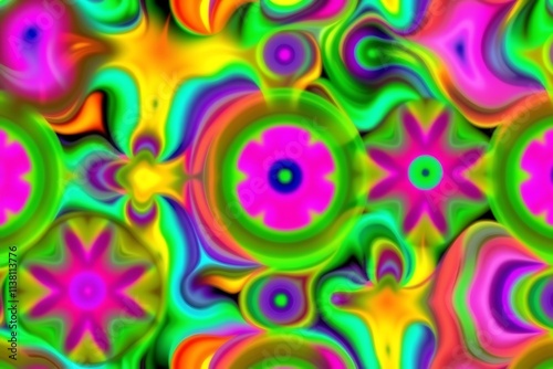 Fototapeta premium Psychedelic Abstract Pattern: A mesmerizing kaleidoscope of vibrant colors and swirling patterns, evoking a sense of psychedelic energy and groovy vibes.