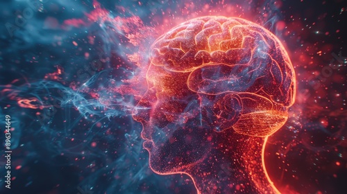 © BonzEarthsnapper, Fototapeta premium Psychedelic figures representing brain parts in an FPV shot, revolving inside a human head, captured with a cinematic style and fast motion blur