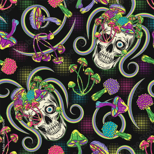 © OA_Creation, Obraz premium Psychedelic label with human skull, mushrooms